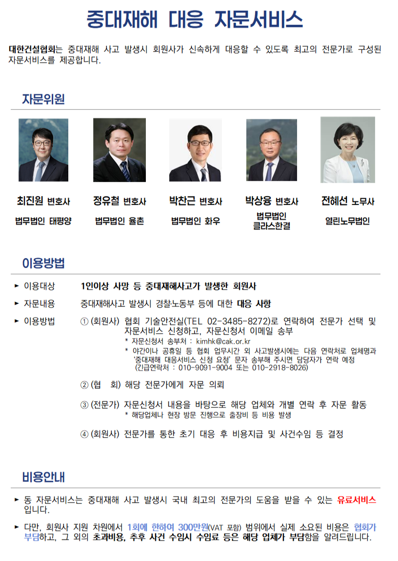 동 자문서비스 신청서는 사전에 협회에 유선으로 연락 후 안내에 따라 작성 및 제출해 주시기 바랍니다.